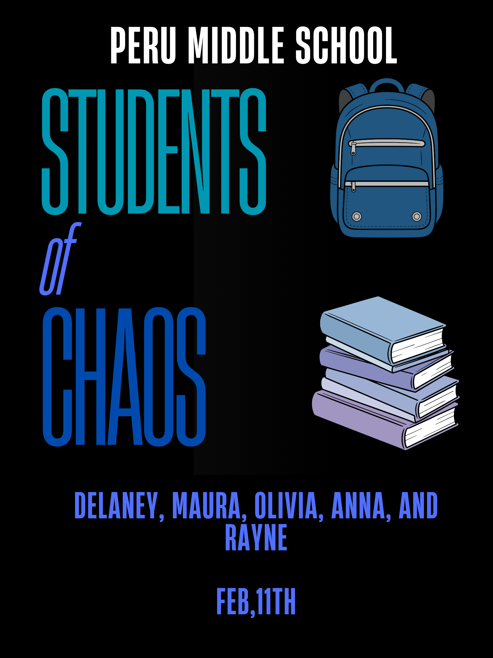 Description: A student over prepares, and students whisper and gossip about the over prepared student. In the long run they all get in trouble and principal Anna Jess is very mad.