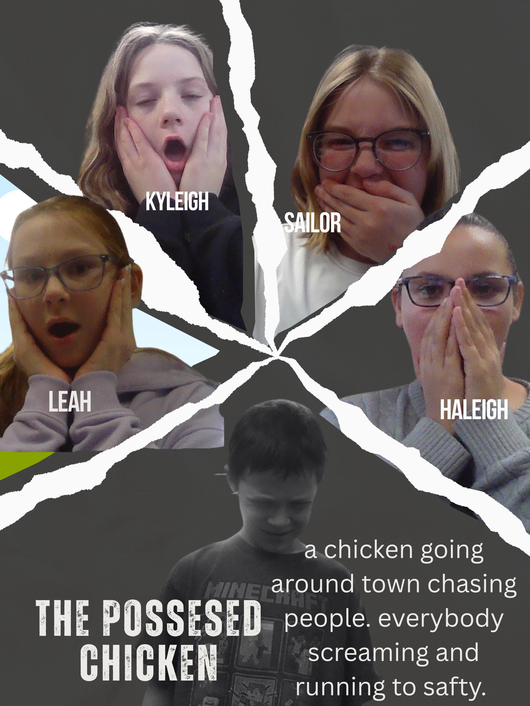 Description: Jace is the possesed chicken and everyone else is trying not to get infected by the chicken and them kyleigh come and freezes the possesed chicken and then everybody is happy and comes to gather up and congrates each other